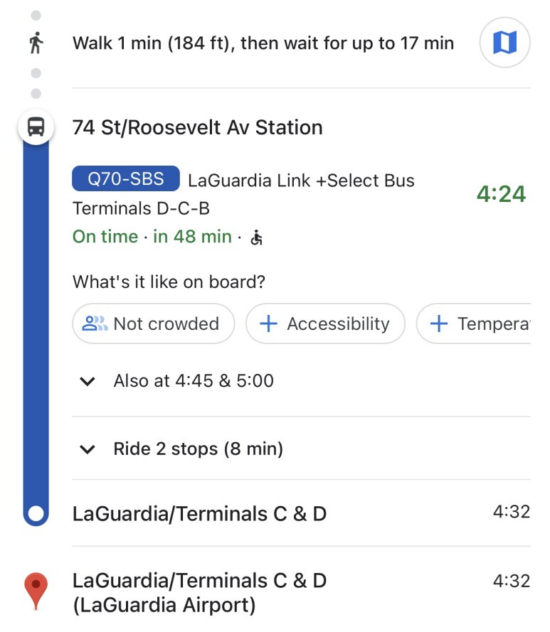 맨하탄에서 라과디아 공항까지 가는 법은 생각보다 간단하다. 지하철을 타고 Roosevelt Av 역으로 간 뒤 공항버스로 갈아타면 된다 ! 지하철->버스는 환승이 가능하기 때문에 갈 때는 교통비도 한 번밖에 안듦. 그야말로 개이득