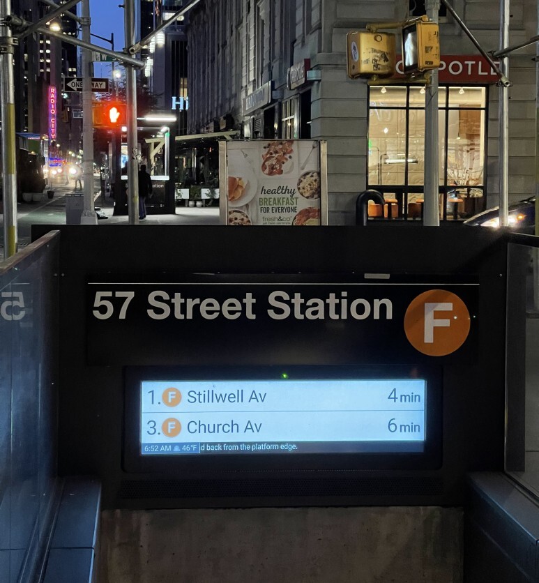 57번가 역까지는 도보로 이동했다. 이제 여기서 F라인을 타고 루즈벨트 애버뉴(Roosevelt Av) 역까지 가면 일단 반은 성공하게 된다.