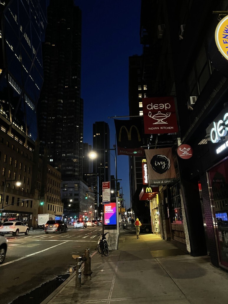 해 뜨기 전 뉴욕이 그렇게 위험하대서 솔직히 걱정 좀 많이 했는데 그닥,,? 내가 깡다구가 좀 센 것도 있지만 출근하는 사람이 은근 있어서 안 무서웠다. 맨하탄의 아침은 새벽부터 시작되는 것 같음 ㅋㅋㅋㅋㅋ 걱정을 아예 하지말라는 건 아니지만 그렇다고 무서워서 벌벌 떨 필요도 딱히 없는 듯 하다.