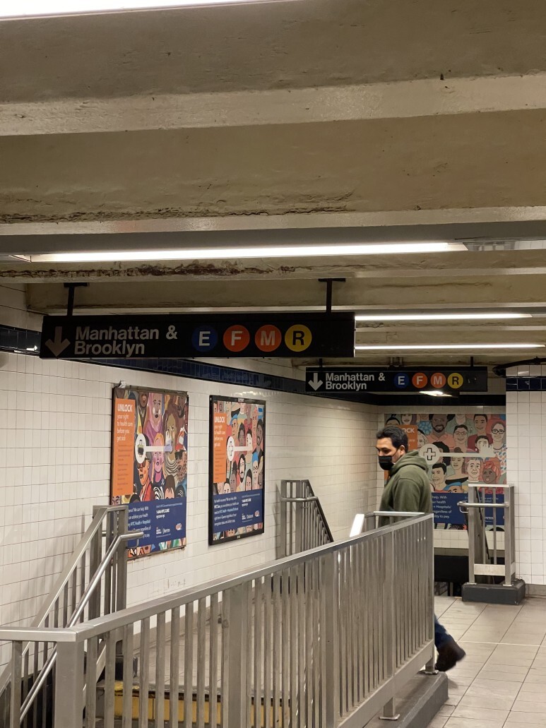 별로 안 기다렸는데 바로 와주는 E노선 쟈철~~ 이때 한창 동양인 상대로 지하철 선로에 밀어버리는 혐오범죄 기승할 때라 기둥 쪽에 잘 숨어있었음 ㅎ.. 동네자체는 쪼끔 무서울법한 곳이지만 루즈벨트역은 커서 뉴욕 내 다른 역이랑 딱히 차이점 없긴했다.